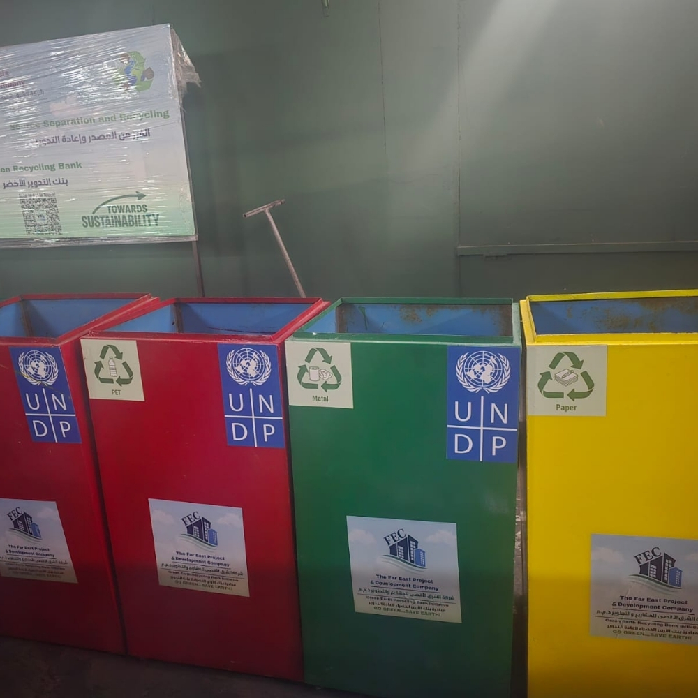 قامت شركة FEC، بالتعاون مع برنامج الأمم المتحدة الإنمائي (UNDP)، بتنفيذ مبادرة بنك الأرض الخضراء لإعادة التدوير من خلال إنشاء نقطة مخصصة لجمع المواد القابلة لإعادة التدوير داخل مبنى UNDP في الأردن، دعمًا لممارسات الاستدامة البيئية وتعزيز الفرز المؤسسي.
